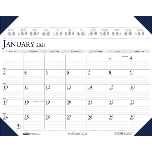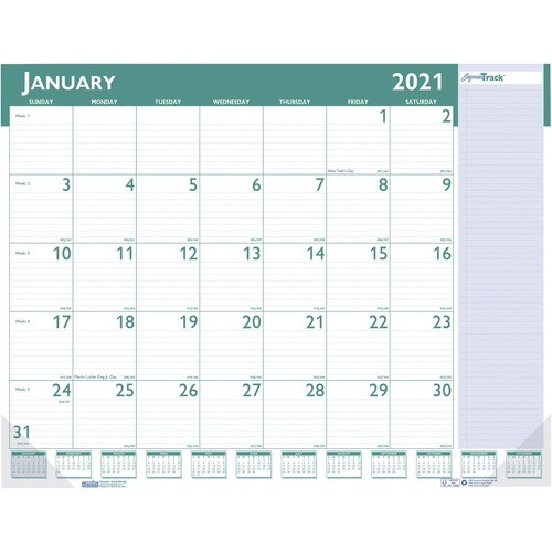RECYCLED WORKSTATION-SIZE ONE-COLOR MONTHLY DESK PAD CALENDAR, 18.5 X 13, 2021