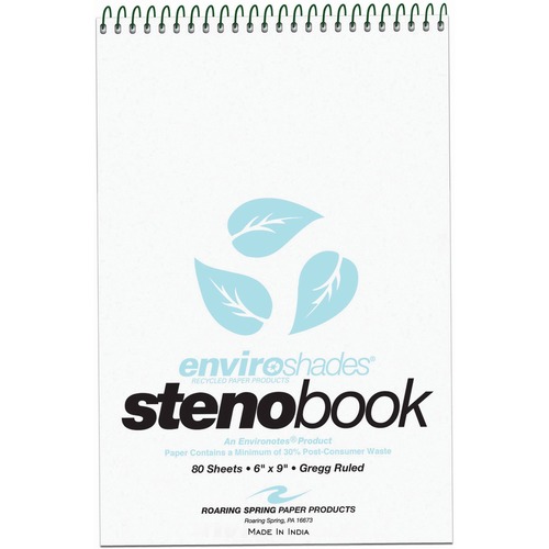 Steno Book, Gregg Rule, 60 Sheets/PD, 6"x9", 12/PK, GN Tint